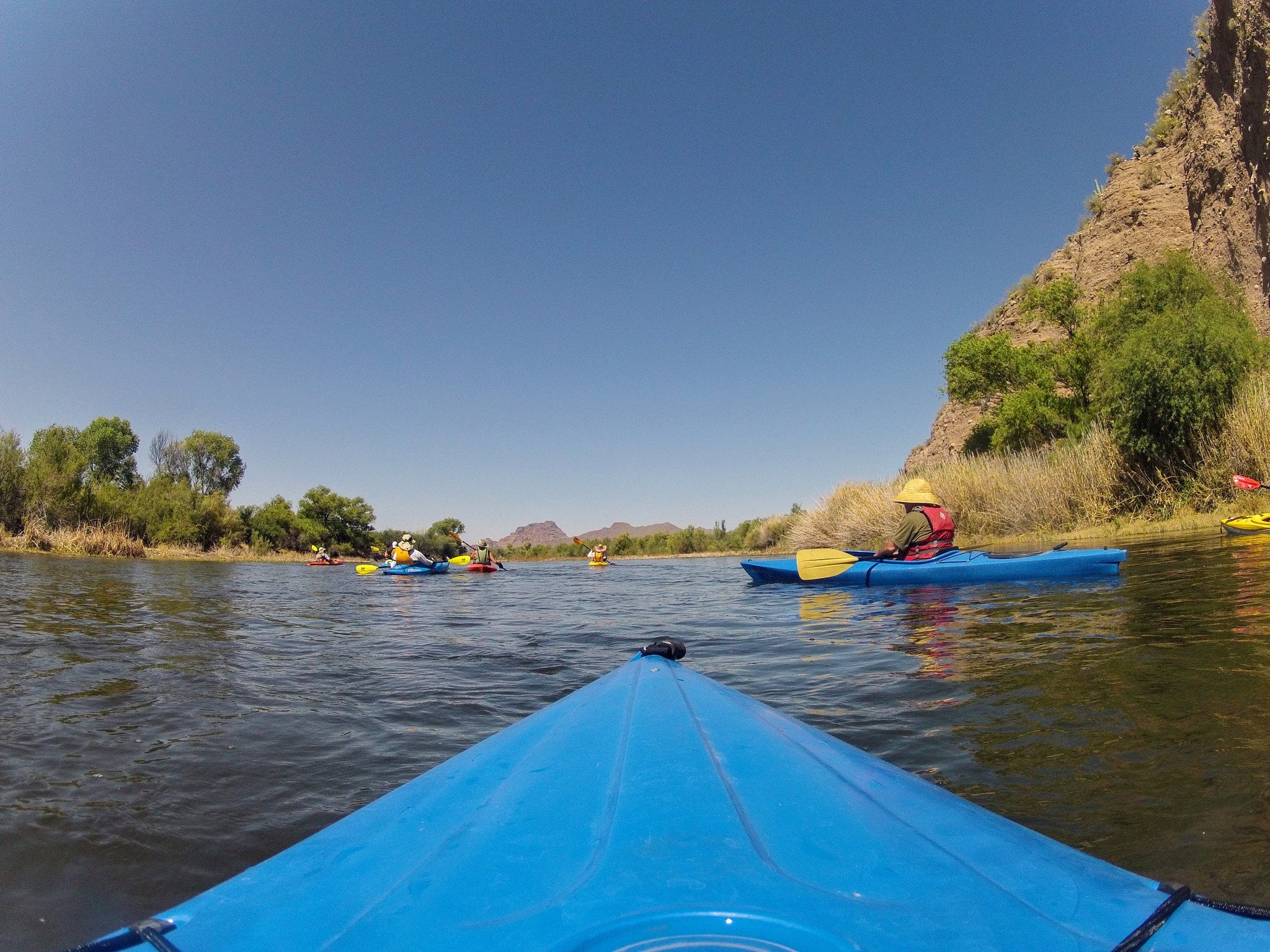 Even when the gauge looks too low for a full run, you might be able to kayak further down the river. The Verde River joins the Salt River near the Phon D Sutton Recreation Area, often adding enough water to allow for a run downstream. The last mile or so of calm water approaching Granite Reef Diversion Dam features enough water to paddle year round, though it's more lake-like in that stretch. If you're desperate for a paddle but the Salt River isn't cooperating, you can just as easily continue up the road to Saguaro Lake.