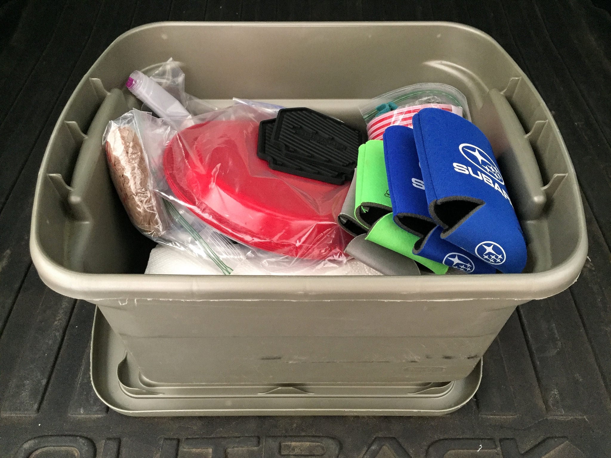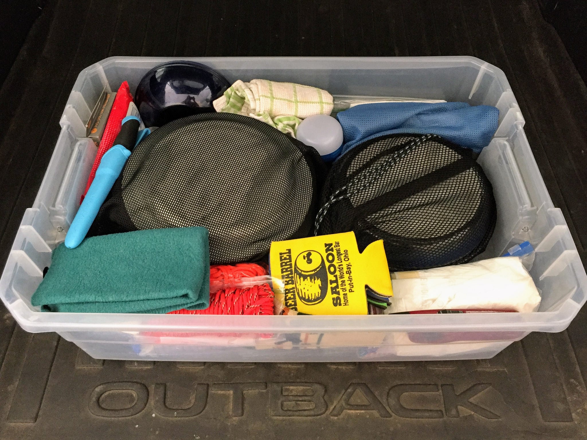 Keeping it simple and organized also means bringing a bit less and fewer "maybe I'll need this" sort of items.. The fewer items you bring, the fewer things you'll have to manage during your trip. In this case, I brought two things that I definitely didn't end up needing: my backpacking chair and my multi-use camping bucket. Both items were small and didn't clutter things up, so I tossed them in even though I wasn't sure if I'd use them. And, like just about every time, I was right. Because I didn't spend any time at an actual campsite, I never made a campfire—and therefore, I never needed the chair. When I ate, I simply sat in the backseat or at a picnic table. And I assumed that the bucket would come in handy for things like washing up and doing dishes. I really didn't need to do much of those tasks either, given the more frequent showers I snagged and how few dishes I dirtied.